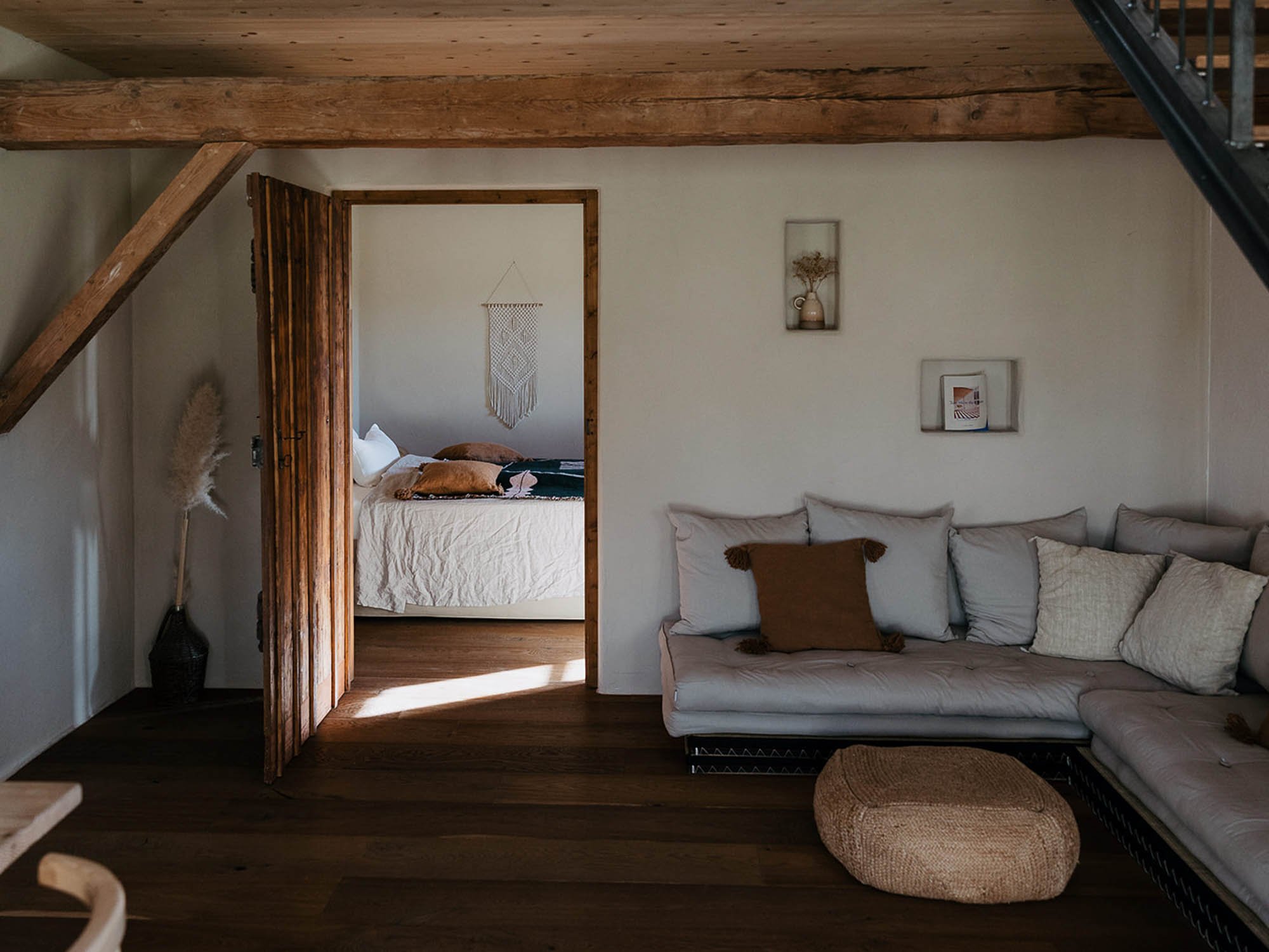Drei gemütliche Bleiben laden zum Schlafen, Kochen und Beisammensein ein.